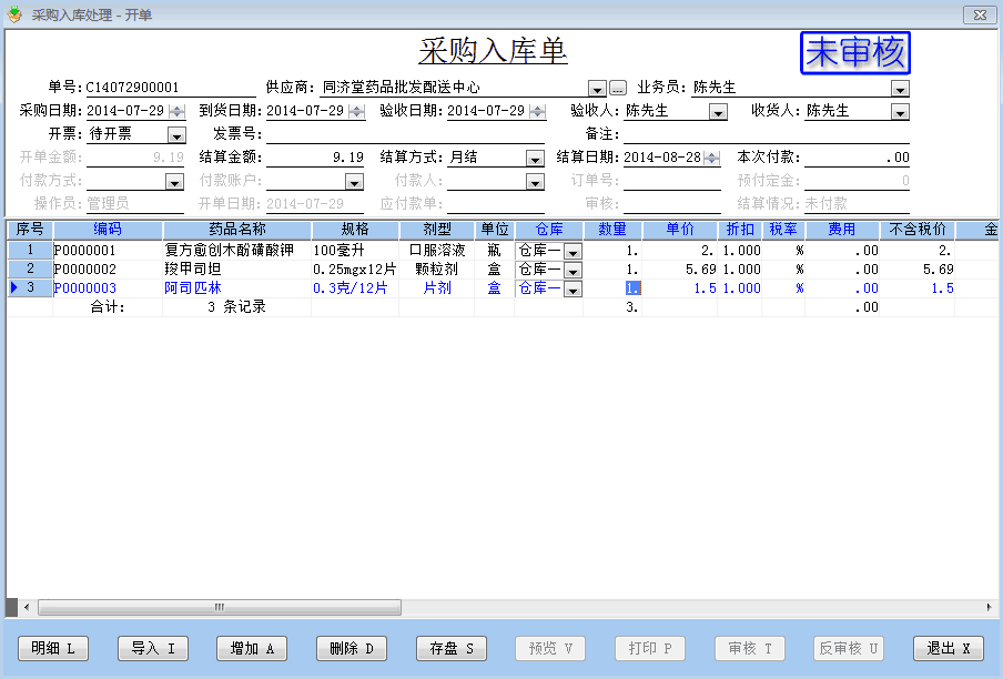 海思藥品進銷存管理軟件GSP(銷售管理軟件)采購入庫